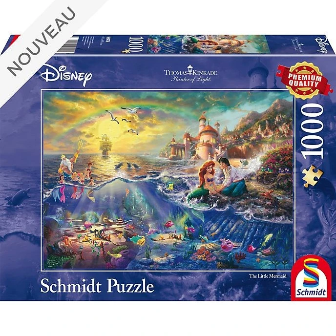 Replongez dans l’univers féérique de La Petite Sirène avec ce superbe puzzle signé Thomas Kindade ! Il offre une formidable fresque du monde d’en haut et de sous l’océan.