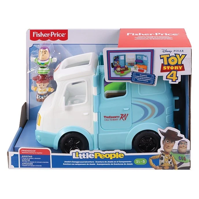 Dans ce coffret camping , Buzz l’Éclair et Jessie partent ensemble à l’aventure ! Inspiré du film Toy Story 4, le camping-car s’ouvre pour offrir un cadre agréable où s’amuser.