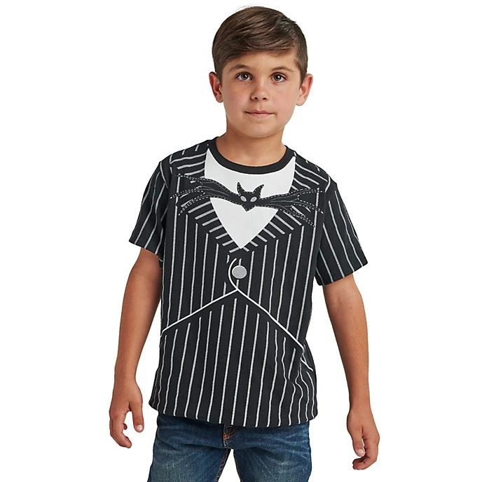 Et si votre petit monstre devenait le nouveau Roi des citrouilles ? Ce t-shirt inspiré du costume de Jack présente un imprimé intégral qui ravira les adeptes du style gothique.