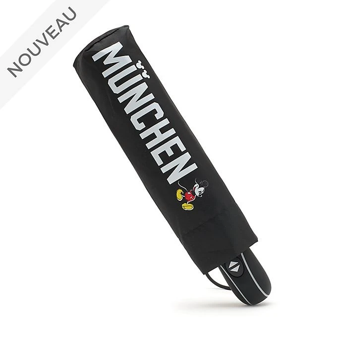 Parcourez la ville en quête de nouvelles aventures avec ce parapluie Mickey ! Ce modèle intégralement imprimé à l’effigie de la célèbre souris porte l’inscription “München” (Munich) et est doté d’une fermeture en tissu auto-adhésif.