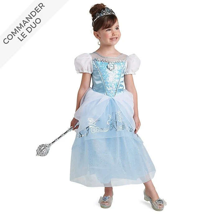 Rien de plus facile que de devenir une princesse avec notre déguisement Cendrillon ! Cette petite collection regroupe une tenue scintillante, des chaussures en plastique, un diadème ornementé et la baguette magique de la Marraine La Bonne Fée.